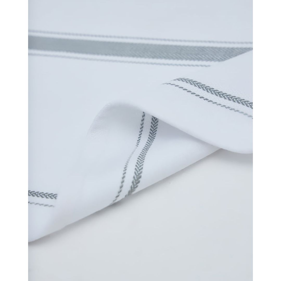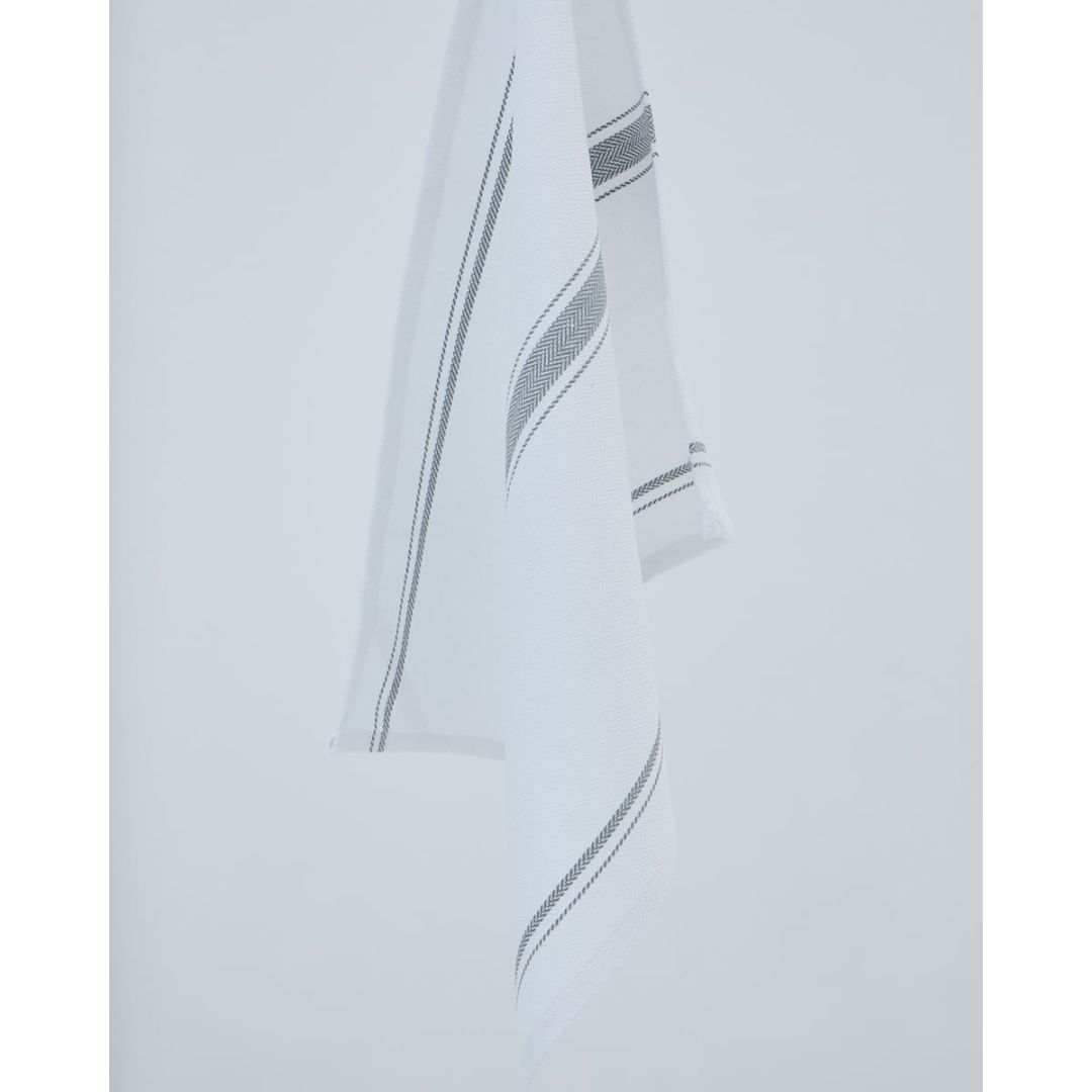Λευκό ποτηρόπανο με ανθρακί ριγέ σχέδιο, από 100% ανακυκλωμένο βαμβάκι. Διάσταση: 40x50cm