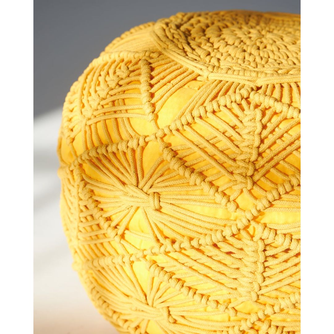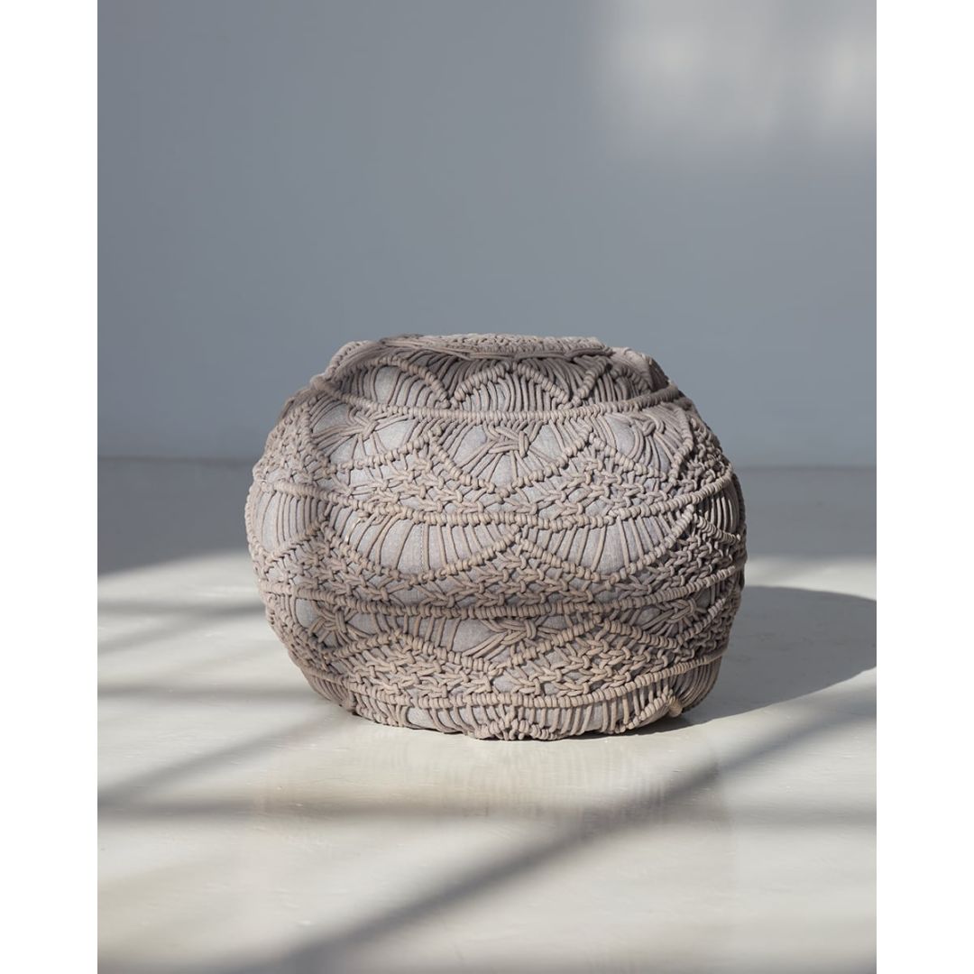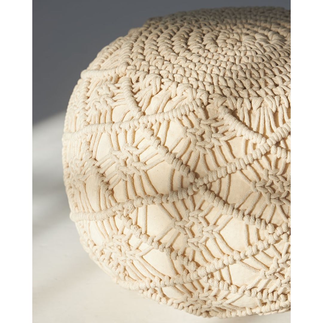Μοντέρνο μακραμέ πουφ με πλεκτό σχέδιο για boho διακόσμηση σε όλους τους χώρους, από 100% βαμβάκι.