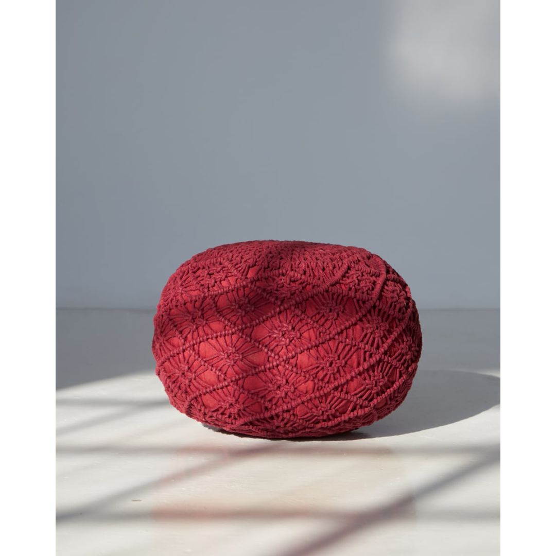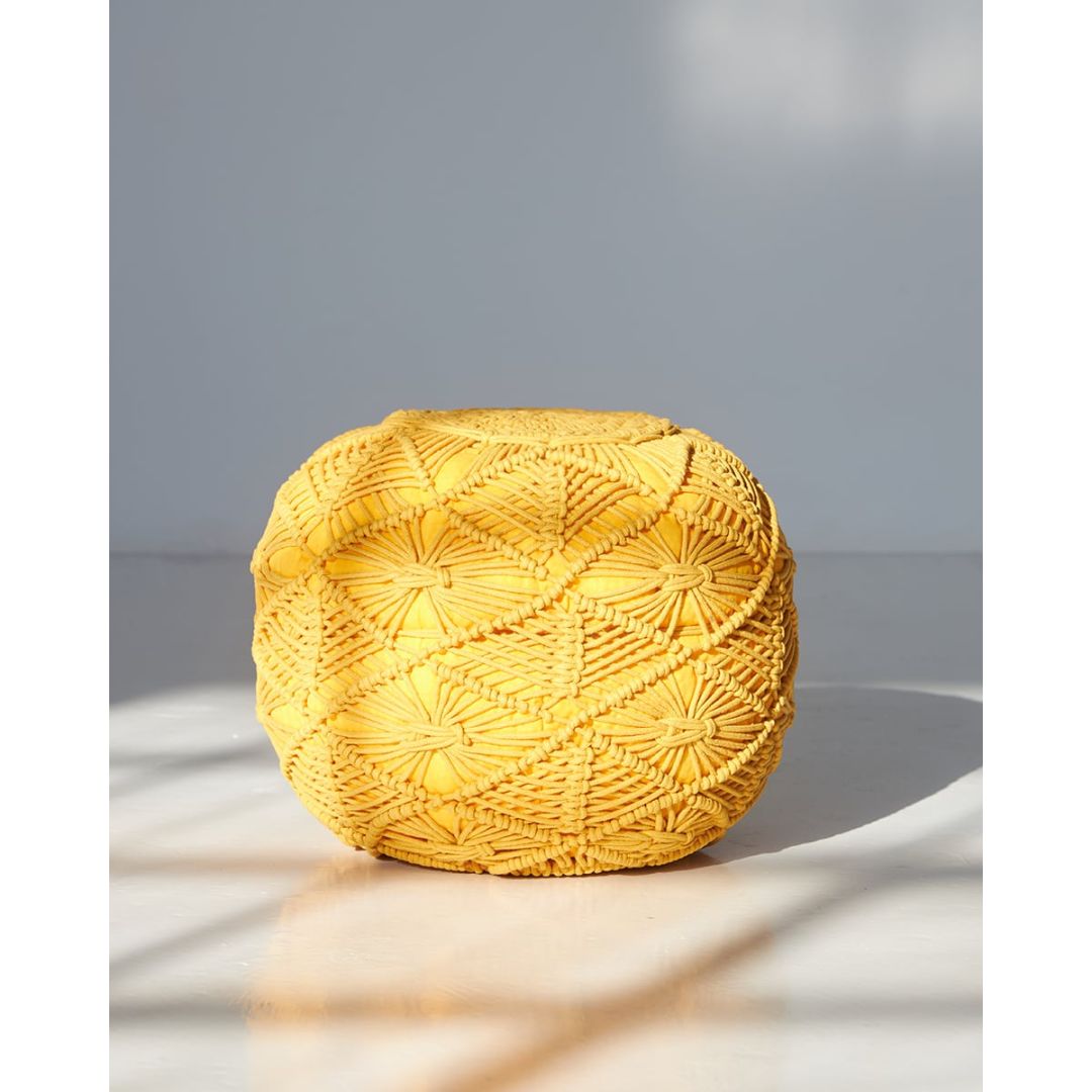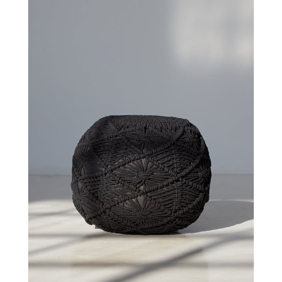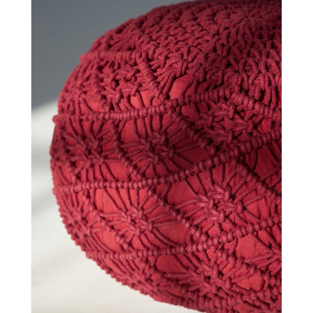 Μοντέρνο μακραμέ πουφ με πλεκτό σχέδιο για boho διακόσμηση σε όλους τους χώρους, από 100% βαμβάκι.
