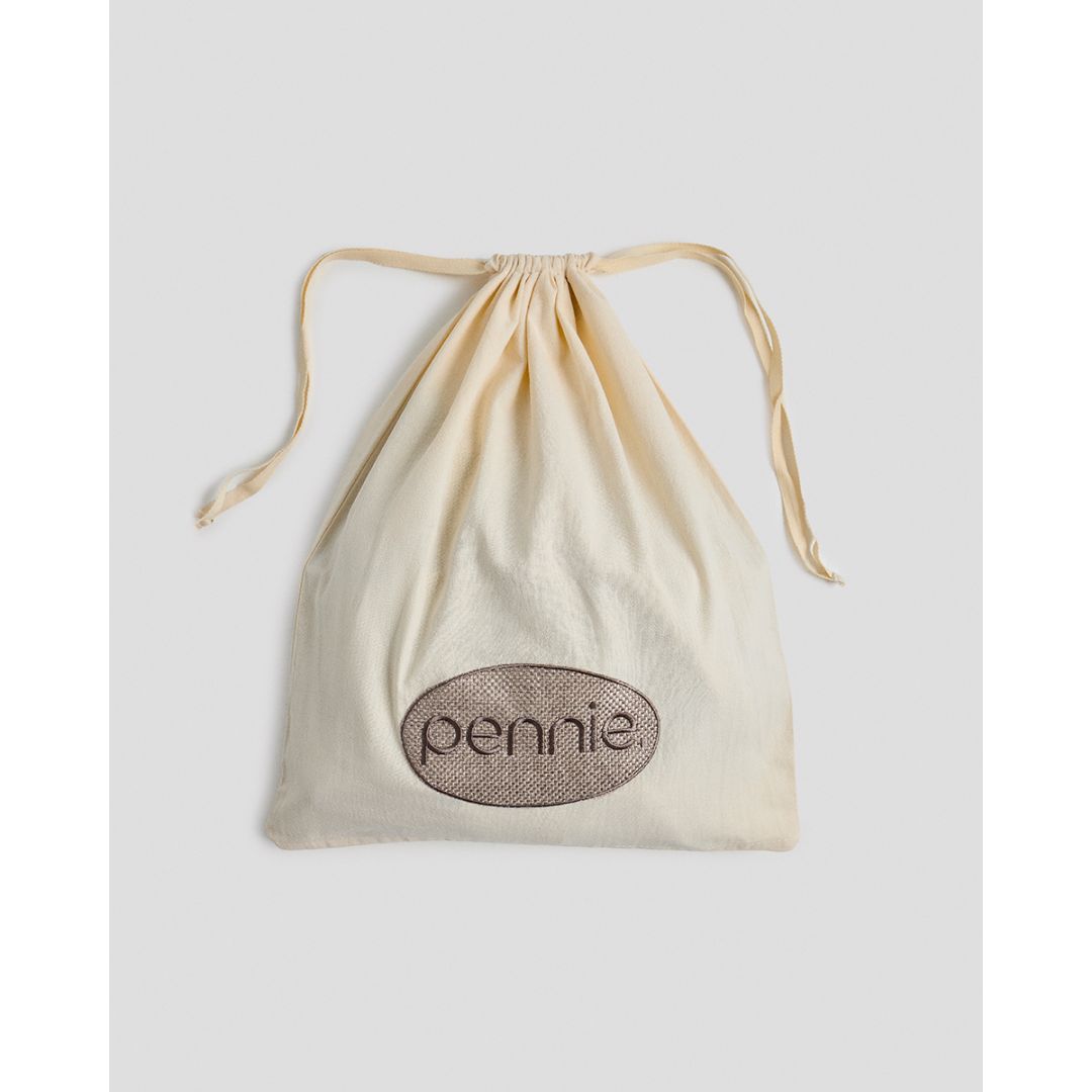 Μονόχρωμος σάκος για άπλυτα με κορδόνι για να σουρώνει & μπεζ απλικέ κέντημα Pennie, από 100% βαμβάκι.