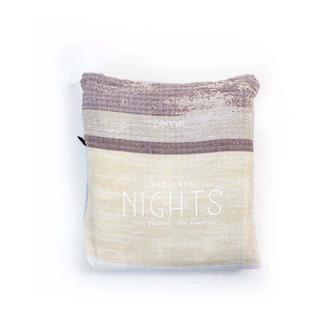 Βαμβακοσατέν Κομποζέ Ζεύγος Oxford Μαξιλαροθήκες Εμπριμέ Λιλά-Ριγέ Nights 50x70+5cm 50x70 5cm