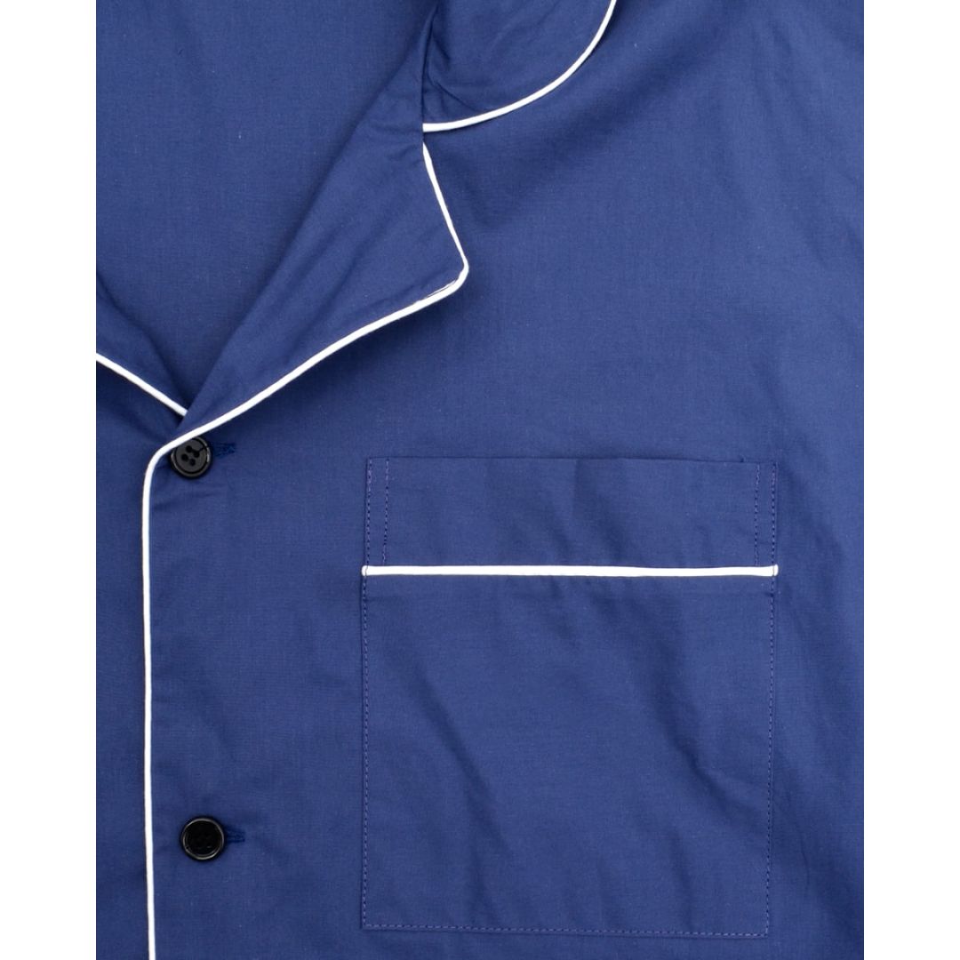 Μονόχρωμο μπλε ραφ ανδρικό σετ 2 τεμαχίων πιτζάμες, από 100% βαμβακοσατέν, 240κλωστές.