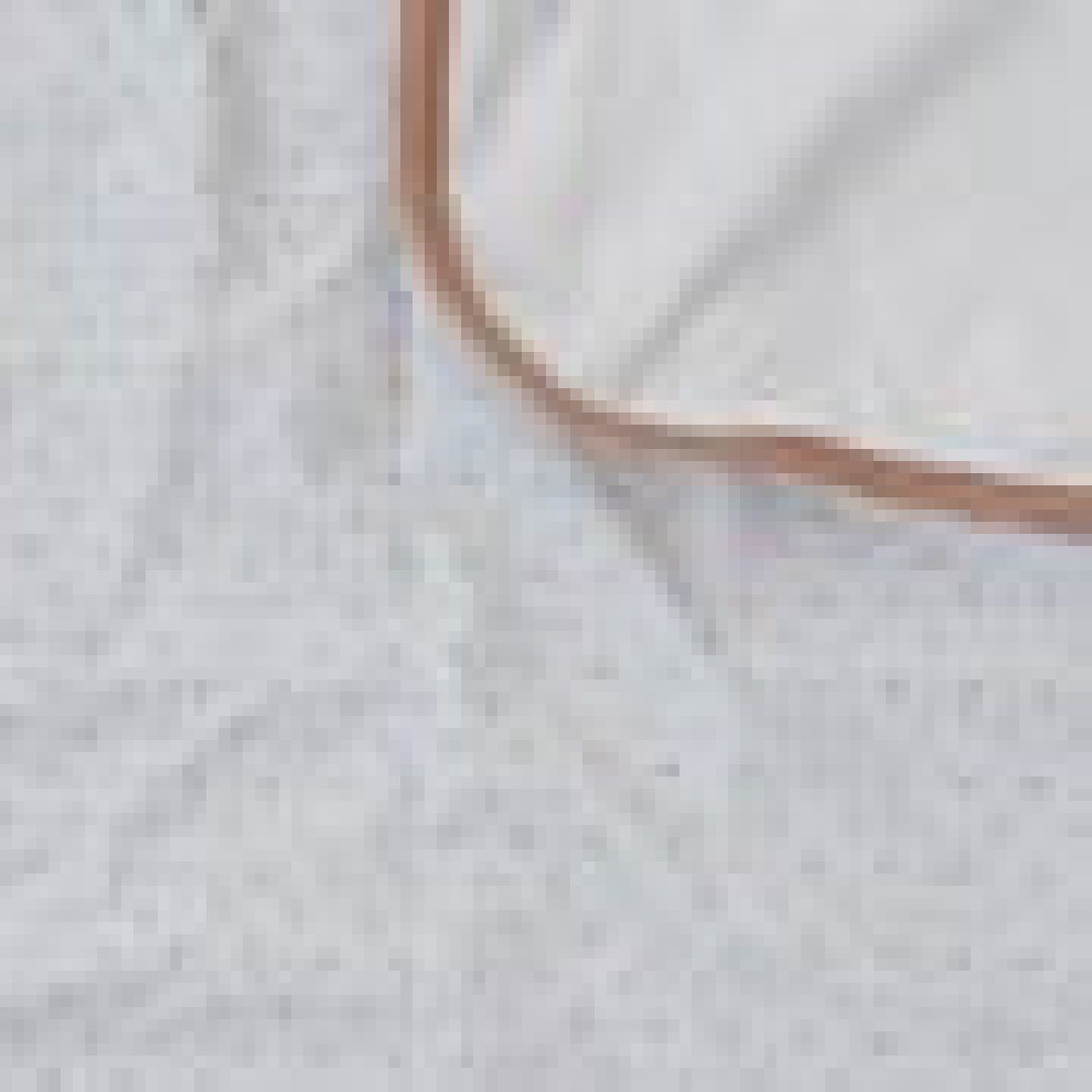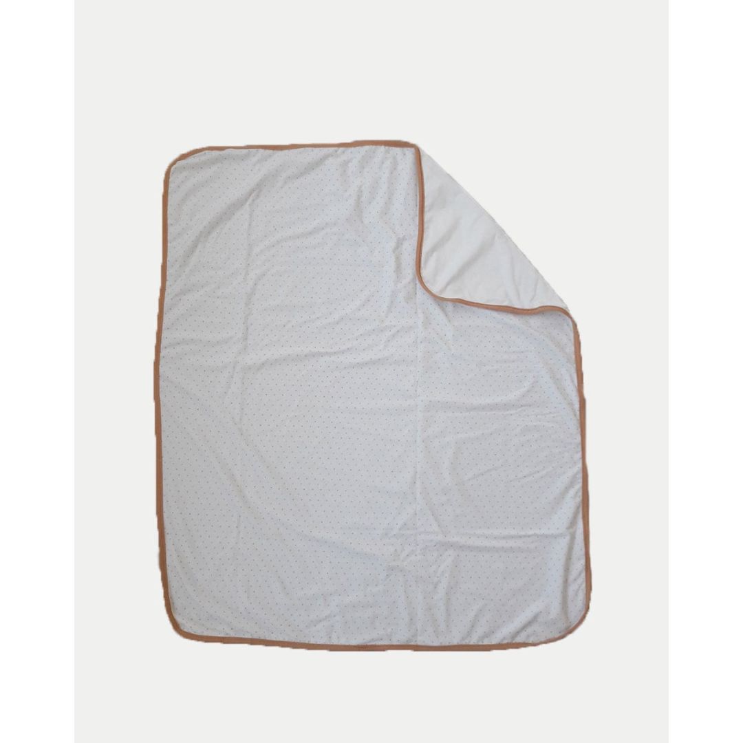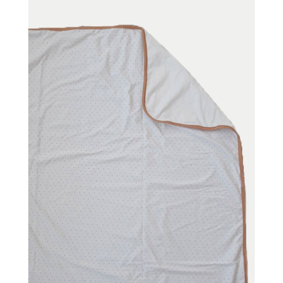 Βρεφική εκρού μακό κουβέρτα λίκνου με διπλό ύφασμα, μπεζ πουά και περιμετρικό καφέ ρέλι, από 100% βαμβάκι.