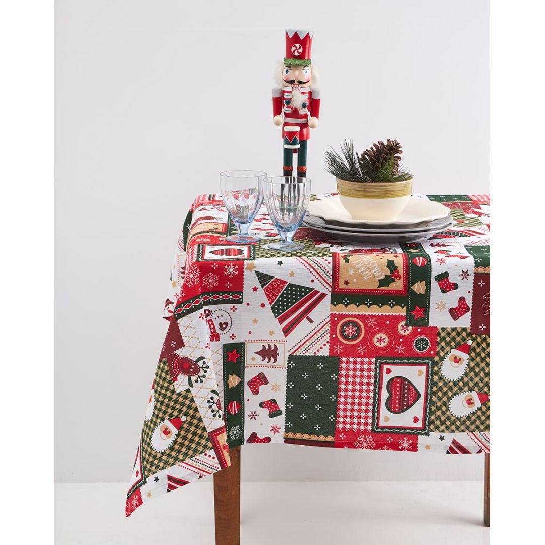 Τραπεζομάντηλο με παράσταση χριστουγεννιάτικα σχέδια, από σύμμεικτο βαμβάκι.